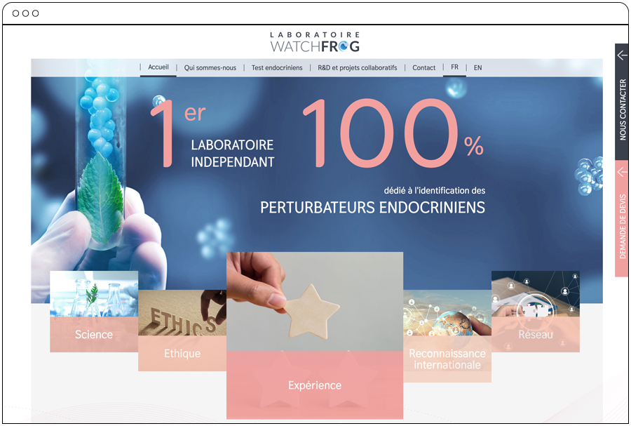 Le Laboratoire Watchfrog est le 1er laboratoire indépendant dédié à l’identification des perturbateurs endocriniens nous avons développé conjointement leur système en ligne ainsi que leur site web